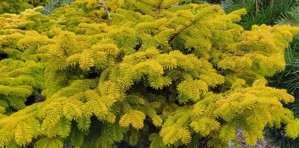 and sturdy conifers are the Golden Spreader Nordmann fir, with its prostrate